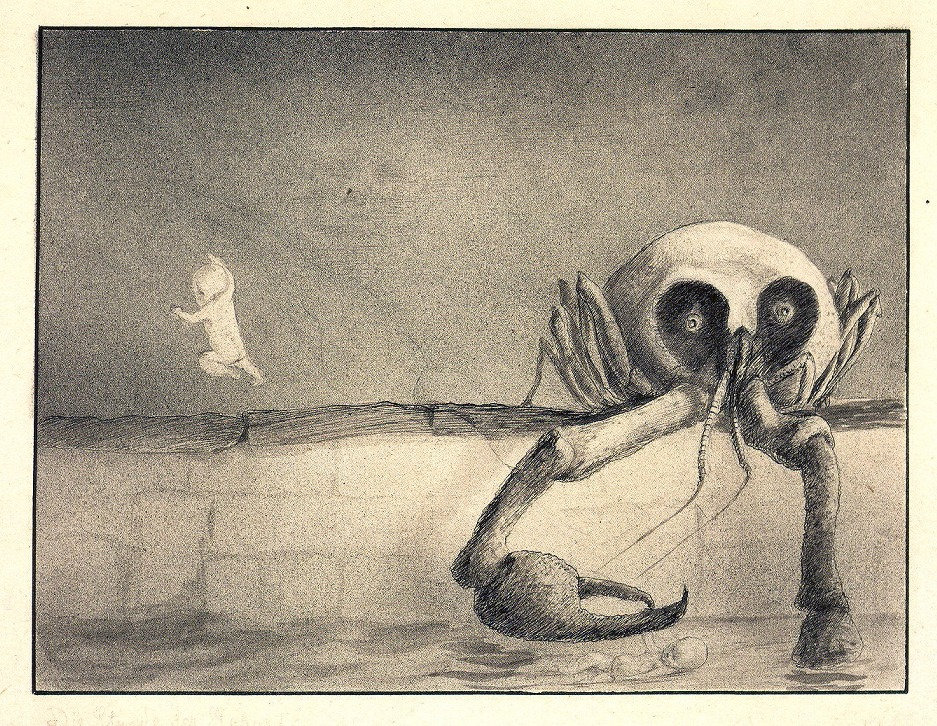 Alfred Kubin, „Moment narodzin”, ok. 1902 roku, rysunek.